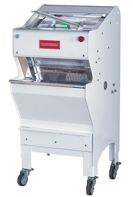 with four wheels for mobility. The TBS-618 slices 400-600 loaves of bread per hour. This machine is